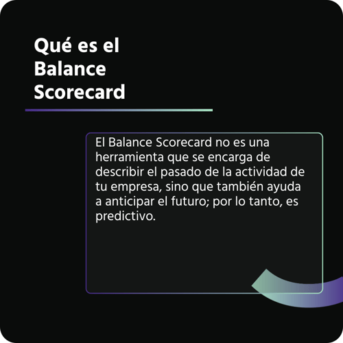 The Balanced Scorecard no es una herramienta que se encarga de describir el pasado de la actividad de tu empresa, sino que también ayuda a anticipar el futuro; por lo tanto, es predictivo. Asimismo, es un enfoque indicativo, porque permite a las empresas guiarlas de la manera adecuada en las acciones y esfuerzos a ejecutar en esos otros aspectos que escapan del dominio de lo financiero para asegurar su crecimiento a mediano y largo plazo.