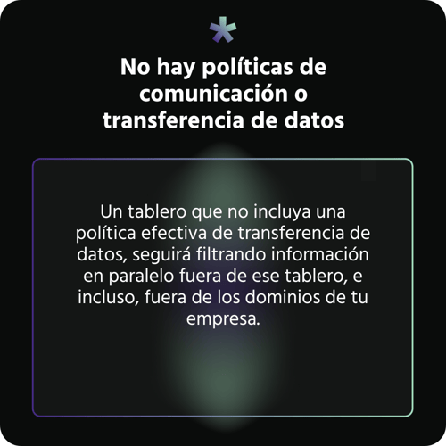 Normalmente, en las entradas y salidas de procesos interviene más de un rol, por lo que la incorporación de un tablero de comando es sumamente necesaria para reunir la información de varios procesos y sus roles asignados a cada uno. Sin embargo, un tablero que no incluya una política efectiva de transferencia de datos, seguirá filtrando información en paralelo fuera de ese tablero, e incluso, fuera de los dominios de tu compañía.