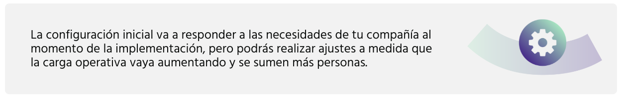 Luego de obtener este relevamiento de tus procesos y asegurarte de que son claros y funcionan bien, el paso siguiente es configurar la plataforma, en función de la carga de trabajo de la empresa, número de usuarios o colaboradores del equipo que la utilicen y diseño de los procesos.