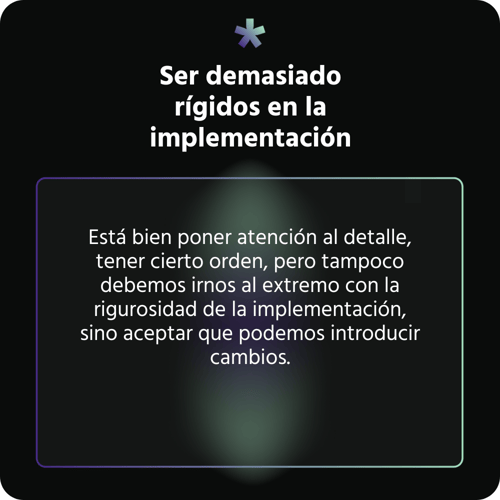 Ya afirmamos que OKR no es una metodología rígida; por lo tanto, si no lo es, ¿para qué convertirla necesariamente en algo rígido? Está bien poner atención al detalle, tener cierto orden de las cosas, pero tampoco debemos irnos al extremo con la rigurosidad de la implementación.