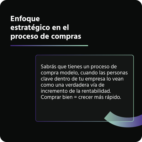 Sabrás que tienes un proceso de compra ejemplo o modelo, cuando las personas clave dentro de tu empresa lo vean como una verdadera vía de incremento de la rentabilidad. Comprar bien = crecer más rápido. Además con una buena metodología de compra, tu negocio necesitará menos ventas para conseguir los mismos ingresos netos que tu competencia.