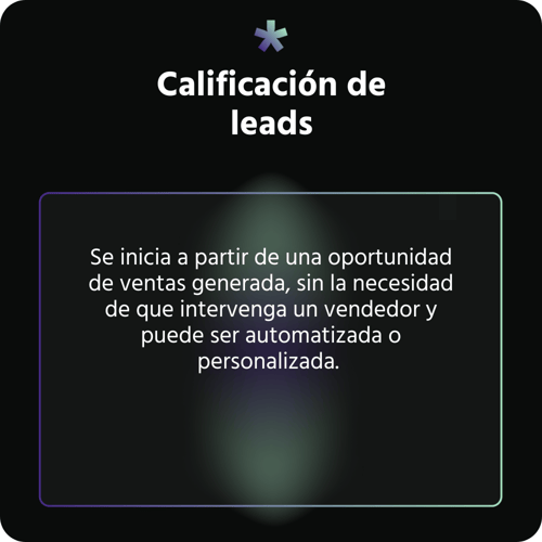 A nivel general, la calificación de leads es una segunda etapa que se inicia a partir de una oportunidad generada, sin la necesidad de que intervenga un vendedor. Aplica para los leads o prospectos que cumplan con ciertos requisitos para comenzar el proceso de ventas. La calificación puede ser automatizada o personalizada dependiendo de diversos factores, como el tipo de industria a la que pertenece tu organización, el momento en que se produce la demanda y la situación particular del negocio.